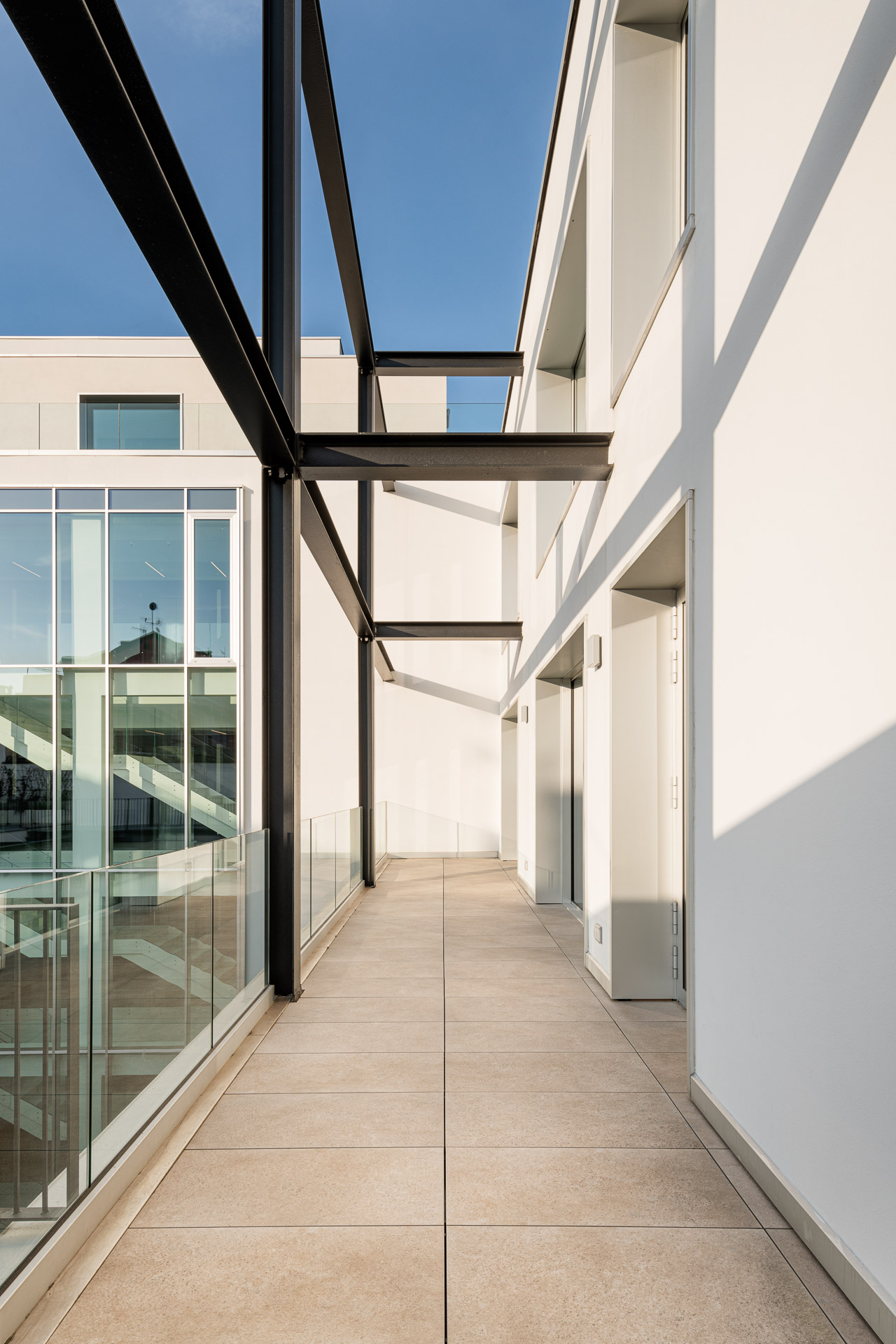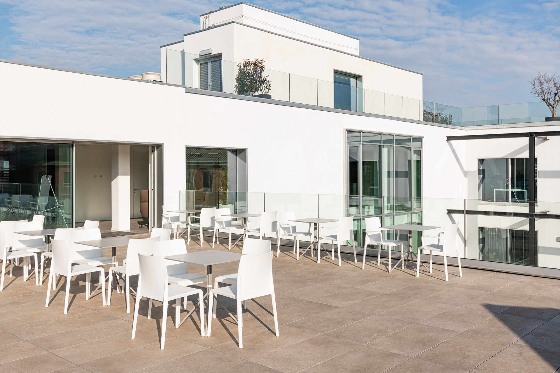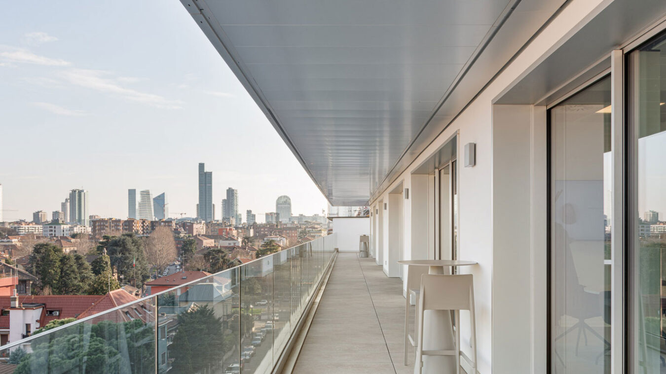 Los diversos espacios están articulados dentro de una planta regular y flexible para responder a los diferentes tipos de uso: espacios abiertos, oficinas, salas de reuniones y áreas exclusivas con acceso directo a las terrazas, que ofrecen unas vistas privilegiadas de la ciudad de Milán.