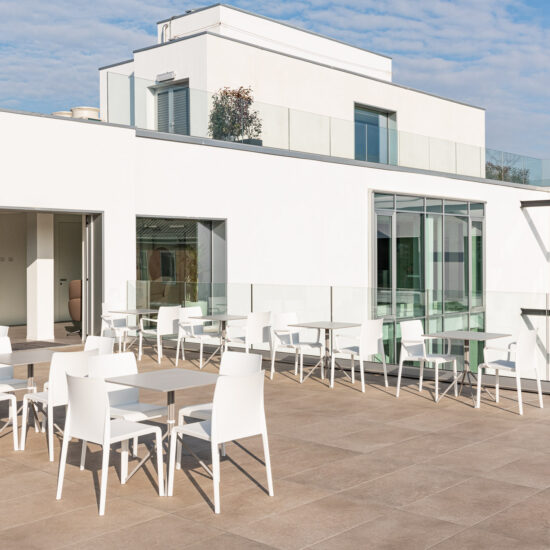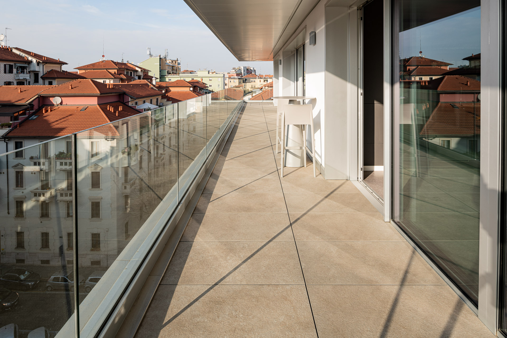 La utilización del gres porcelánico de Ragno para revestir la fachada contribuye, en efecto, a mejorar la eficiencia energética y el aislamiento acústico de la construcción, resolviendo los problemas de humedad y exposición a los agentes atmosféricos y asegurando, por tanto, un alto confort en la vivienda.