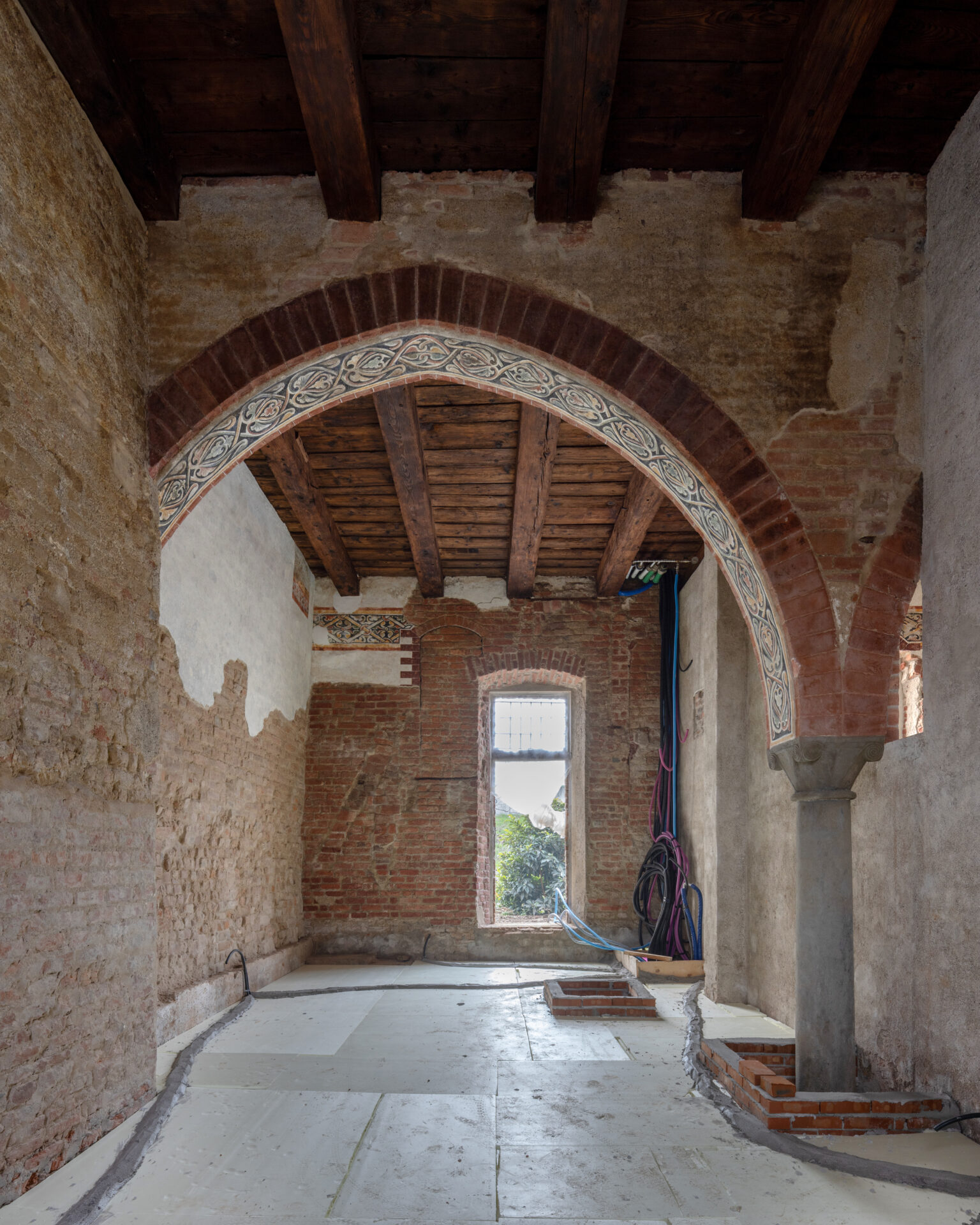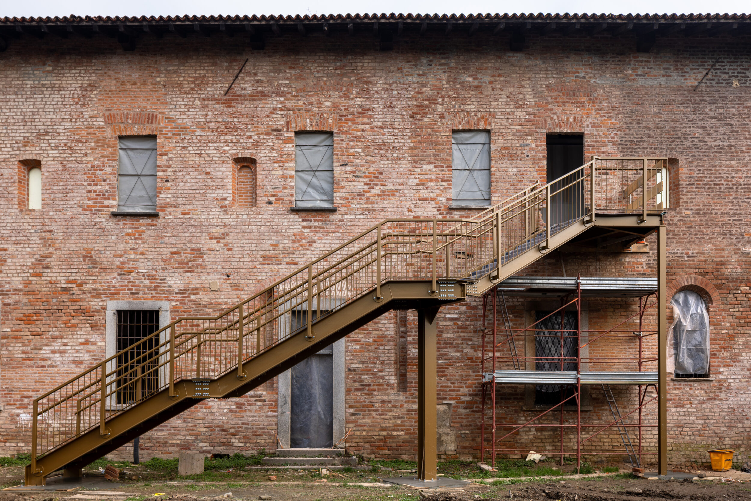 Las intervenciones han preservado las estructuras originales, consolidándolas con técnicas actuales. La elección de los materiales se ha guiado por la sostenibilidad y el respeto a las preexistencias: se optó por elementos en seco como paredes y falsos techos de yeso laminado, suelos flotantes y sistemas de instalaciones a la vista. Se ha prestado especial atención a la interacción entre las partes históricas, recuperadas y refuncionalizadas, y los volúmenes que se han añadido y reconstruido, con elementos de revestimiento que dialogan con el contexto pero mantienen una identidad tecnológica diferente, útil para evidenciar la evolución de la arquitectura de este lugar tan singular. Estas intervenciones, combinadas con un diseño sobrio pero funcional, devuelven a la comunidad un edificio que une pasado y futuro, encarnando los valores de sostenibilidad e inclusión.