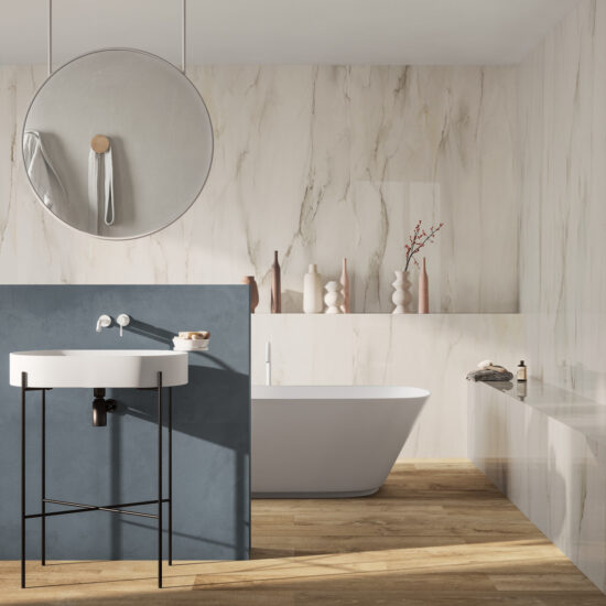 La imitación del mármol blanco es una de las opciones más refinadas para el baño, perfecta si estás buscando elegancia y durabilidad. El gres porcelánico de imitación del mármol ofrece el lujo y la belleza del mármol natural, pero con la practicidad y la resistencia típicas del gres. Las vetas finas o más marcadas pueden transformar un baño en un ambiente sofisticado y atemporal: estos azulejos son perfectos para crear una estética que evoca la elegancia de los baños clásicos, pero que también se adapta a estilos más modernos, con efectos luminosos y de contraste.