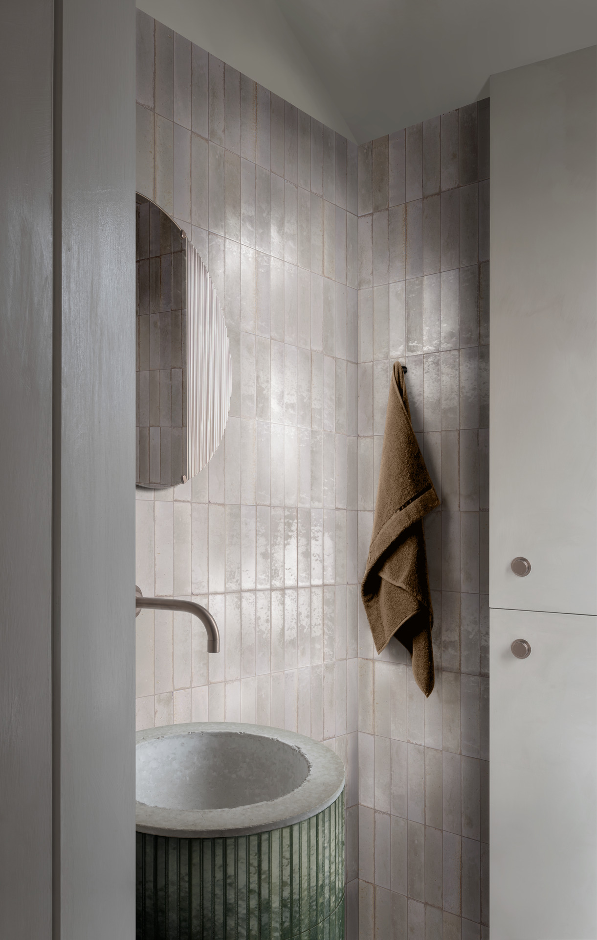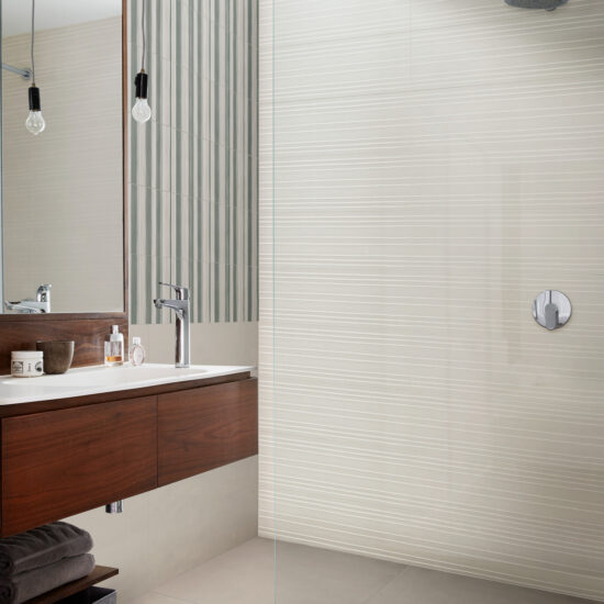 En cambio, los azulejos mates son perfectos para conseguir un efecto más suave y contemporáneo: las colecciones como Stratford Wall ofrecen un diseño sólido y matérico, ideal si buscas un efecto más sobrio y sofisticado.