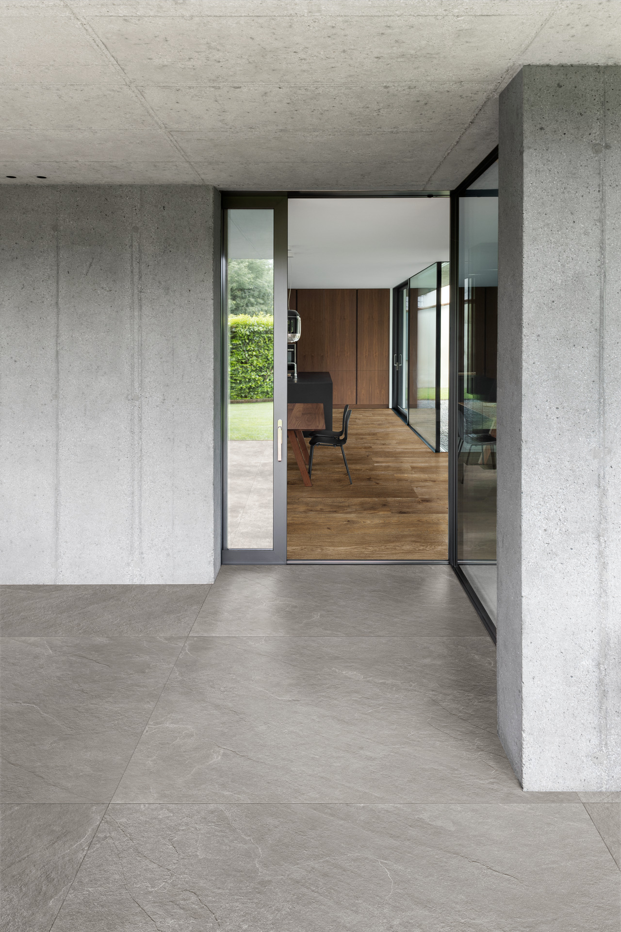 La primera, Realstone_Slate XT20, se ve ampliada con el nuevo formato cuadrado de grosor aumentado exclusivamente en el color Iron, ya disponible en los formatos rectificados de 50 x 100 y de 80 x 100 cm con superficie para exterior y 20 mm de grosor. Esta incorporación incrementa la versatilidad de una colección amplia, compuesta por otras tres coloraciones: Shell, Mush y Black.