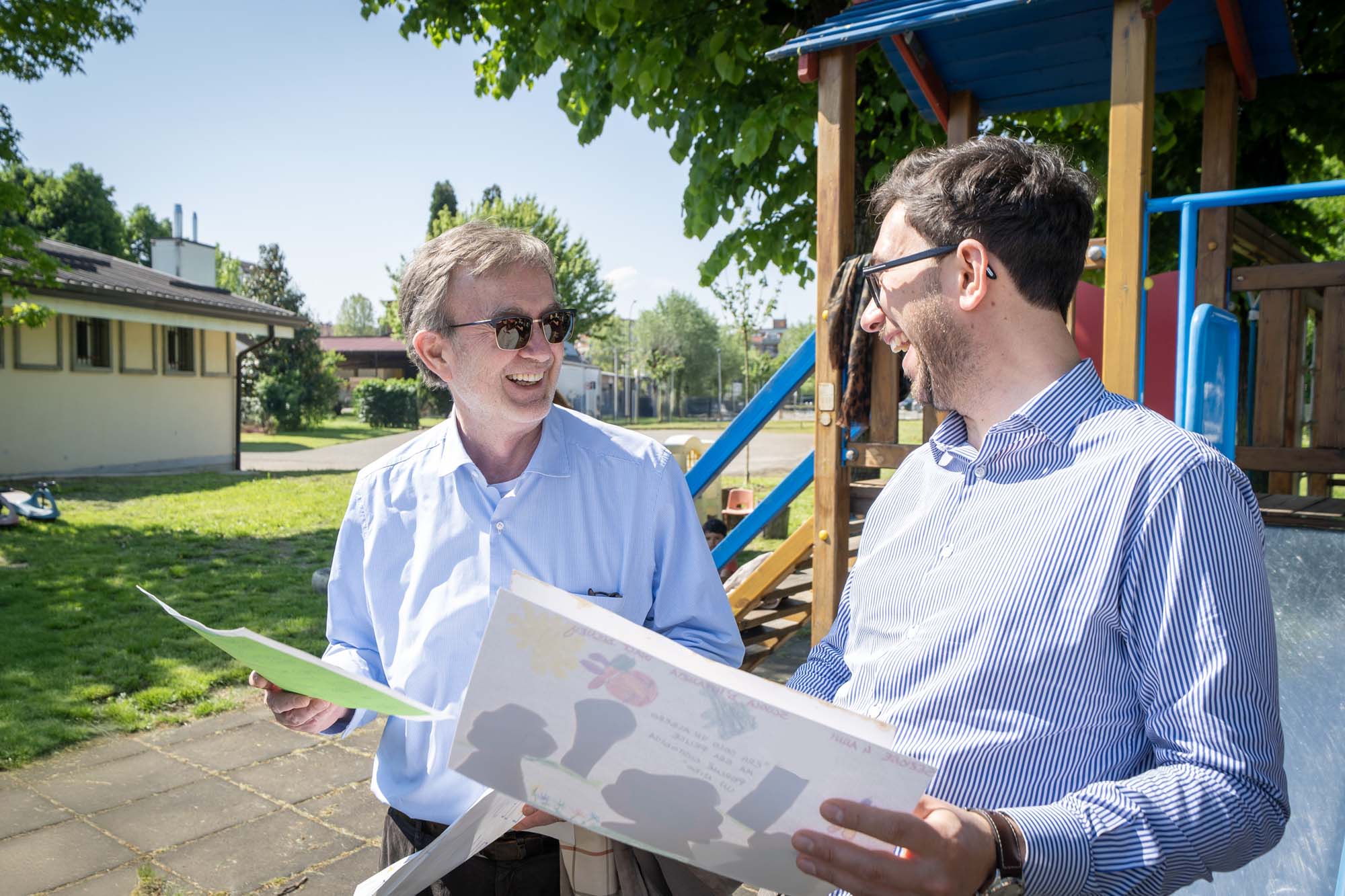 A ellos va el más sincero agradecimiento, en nombre de toda la comunidad de Sassuolo. Esta mañana, en el jardín de la escuela infantil, en presencia del Alcalde de Sassuolo, Matteo Mesini, la Concejala de Educación, Maria Savigni, y la Concejala de Sostenibilidad Ambiental, Chiara Tonelli, los niños de la escuela y los maestros con la directora de la escuela, Cinzia Maria Braglia, y la coordinadora del sitio, Laura Bolzoni, agradecieron al Grupo Marazzi por la nueva obra verde realizada donando algunos dibujos coloridos realizados por los niños de las 4 secciones del jardín de infancia a Mauro Vandini, CEO del Grupo Marazzi, y Leonardo Tavani, Director General del Grupo Marazzi.