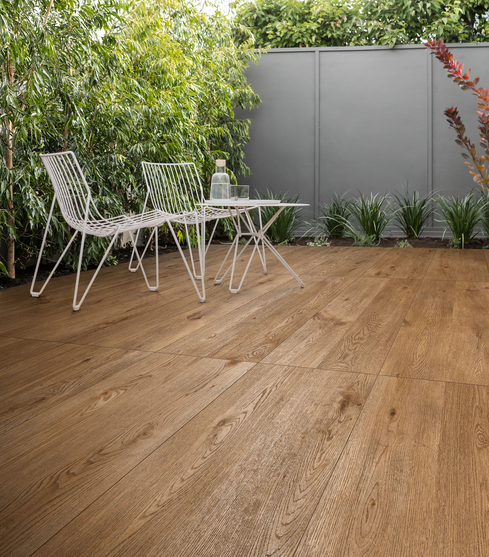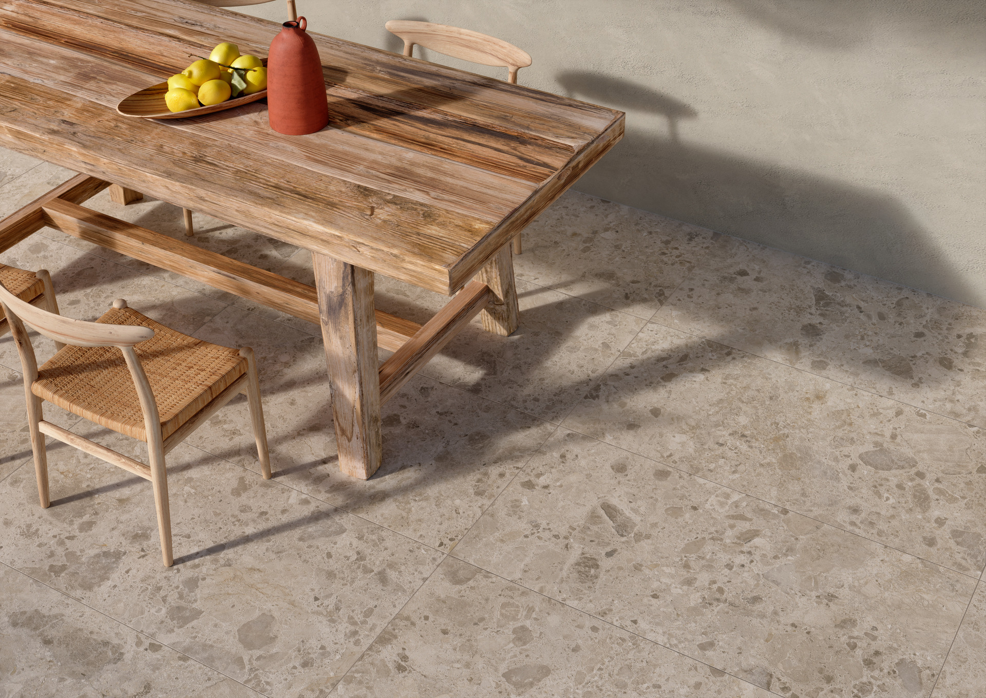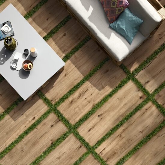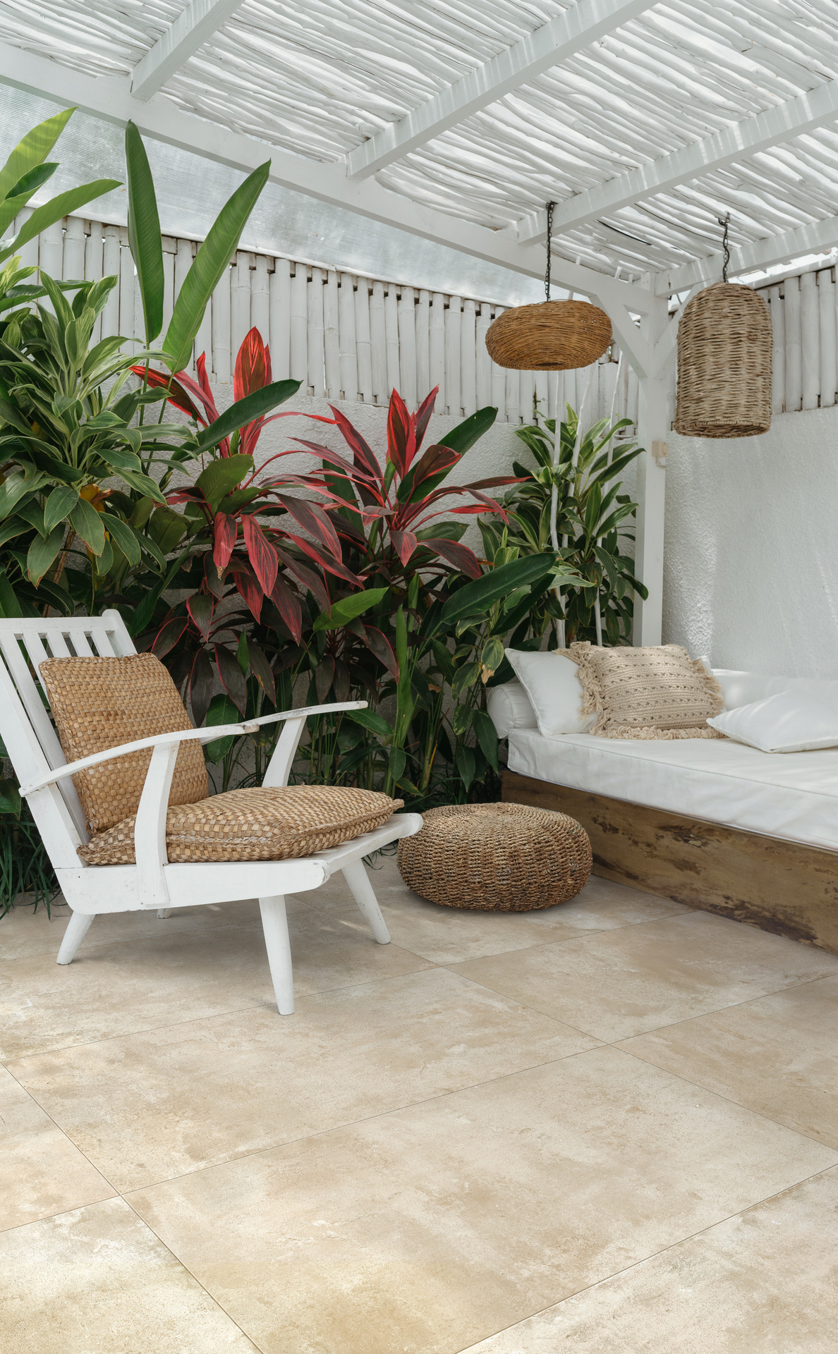 El gres porcelánico para exteriores es un valioso aliado a la hora de diseñar estas zonas funcionales: puede utilizarse para pavimentar la zona de comedor o de descanso, dejando el resto del espacio a la vegetación, o bien para crear una plataforma elevada que resalte la zona de estar. Las superficies continuas y las texturas de imitación de la piedra, el cemento o la madera permiten decorar pequeños espacios exteriores de forma coordinada y coherente, transformando cada metro cuadrado en una oportunidad de diseño. Representa una estrategia excelente si estás buscando ideas para decorar un pequeño jardín con un estilo cuidado, sin renunciar al confort y la funcionalidad.