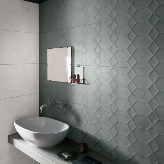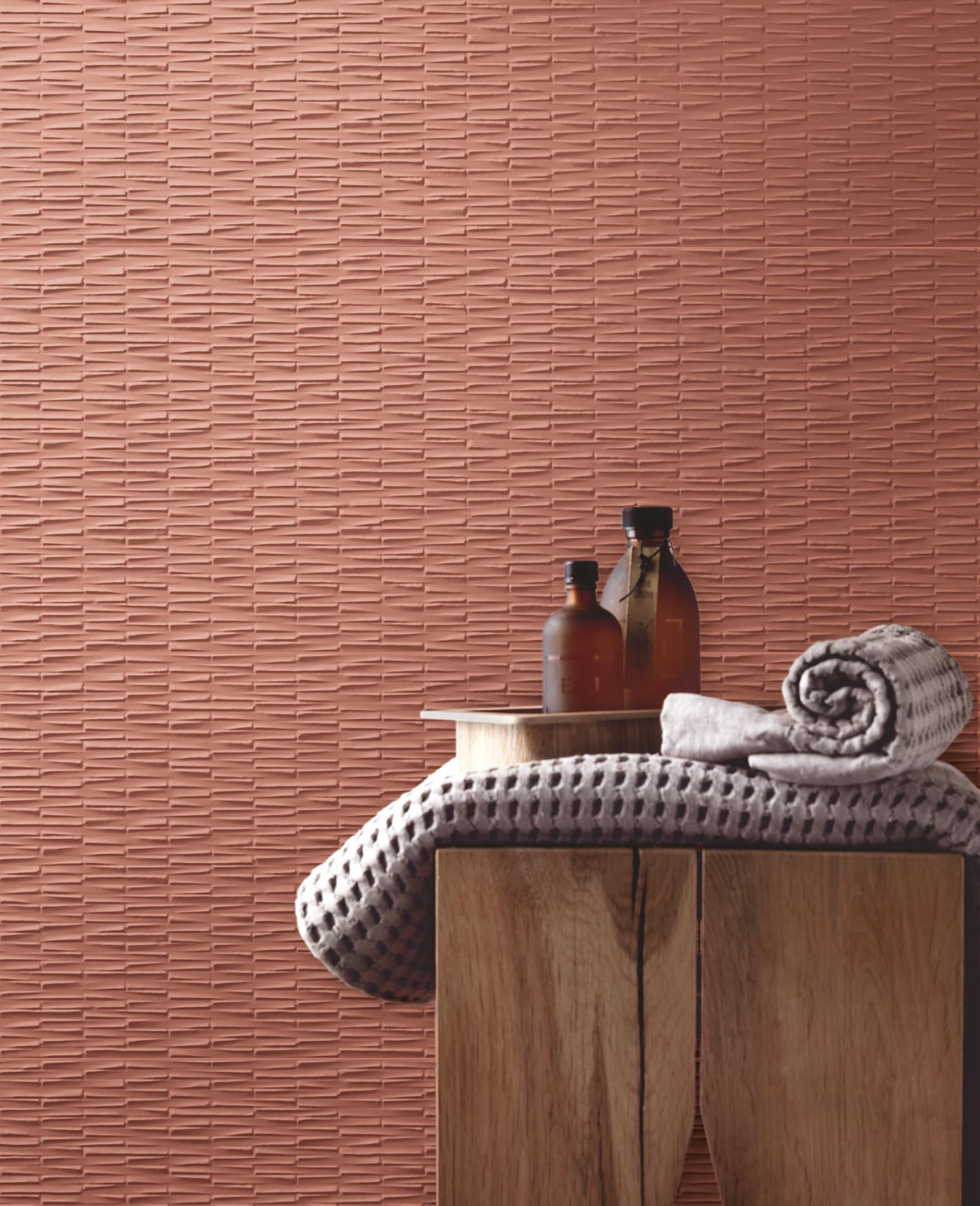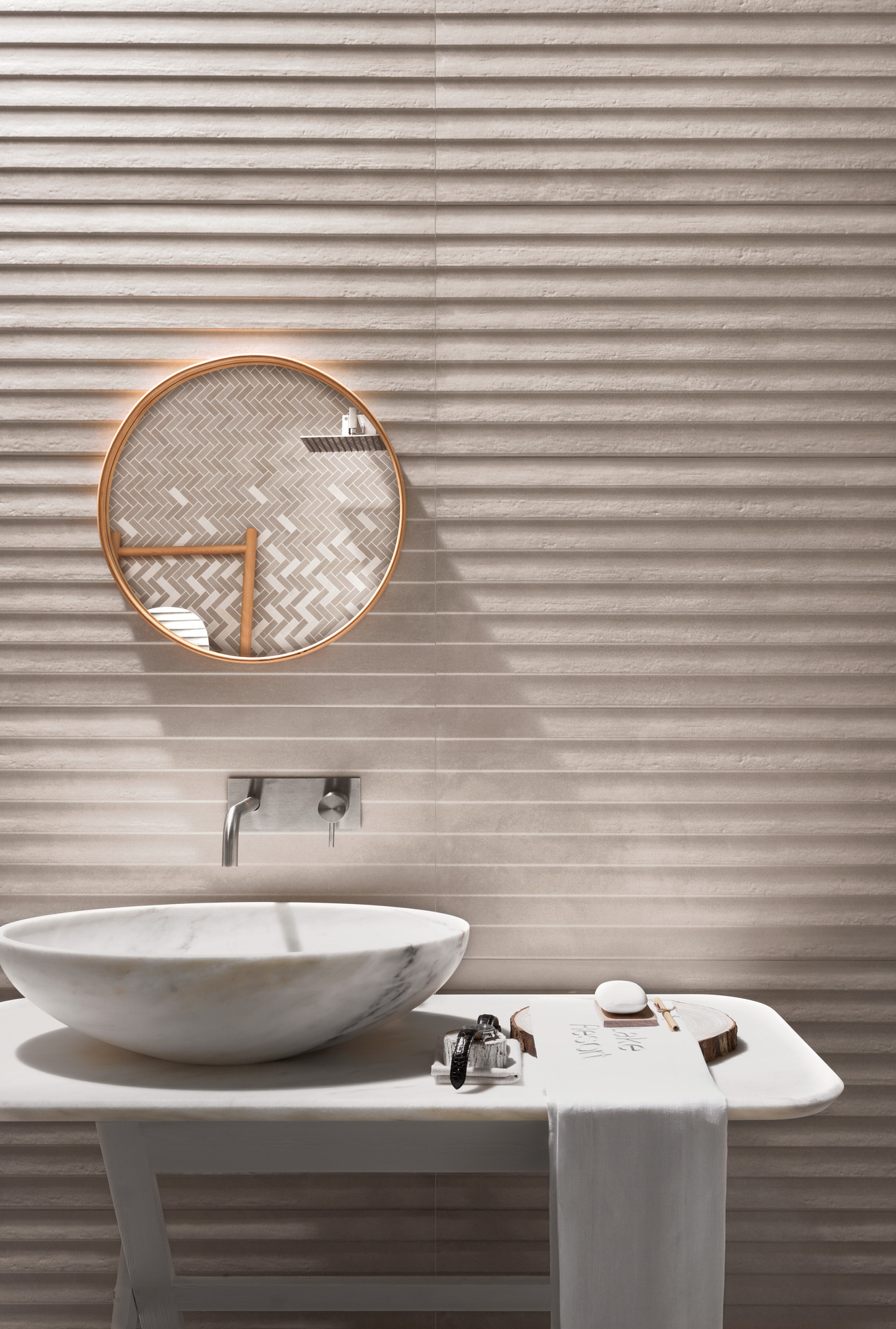La colección Terracruda es pura inspiración orgánica, con paredes tridimensionales y geometrías en relieve; se reinterpreta la tradición proveniente de los materiales de pasta de arcilla, paja y fibras secadas al sol. Las sugestiones son naturales y el bienestar pasa a través de las delicadas sensaciones táctiles del formato de 40 x 120 cm, de 6 mm de grosor, con decoraciones de efecto artesano y suaves acabados tridimensionales; los cuatro colores, tenues y delicados, transmiten una agradable y natural sensación de equilibrio.