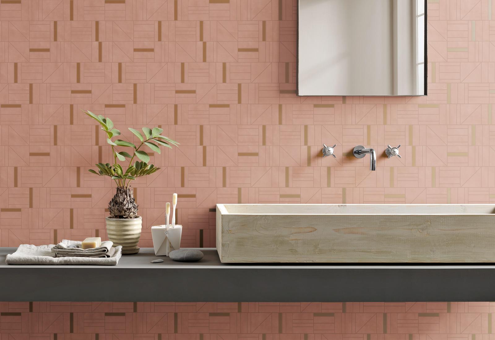 Si en un baño moderno el cometido de generar nuevas sugestiones se le asigna al color, no sorprende que se opte por la nueva y contemporánea paleta cromática de la colección Resina: el rosa, el cotto, el marfil, la pizarra, el gris y el blanco asociados a módulos con tramas de panal y a finos mosaicos producen un efecto de profundidad y continuidad visual que configura espacios recogidos y relajantes, en los que el tiempo ha dejado de ser una medida para pasar a ser una nueva condición.
