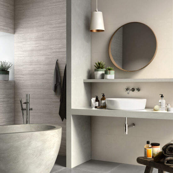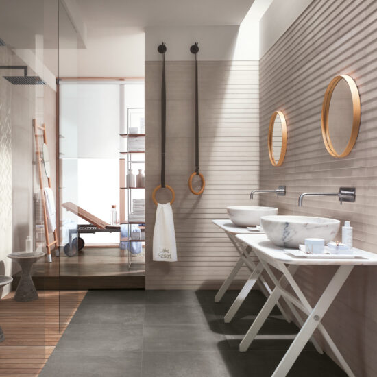Un lugar para el bienestar y el redescubrimiento de los sentidos enriquecido con las colecciones Terracruda, Tactile y Resina.