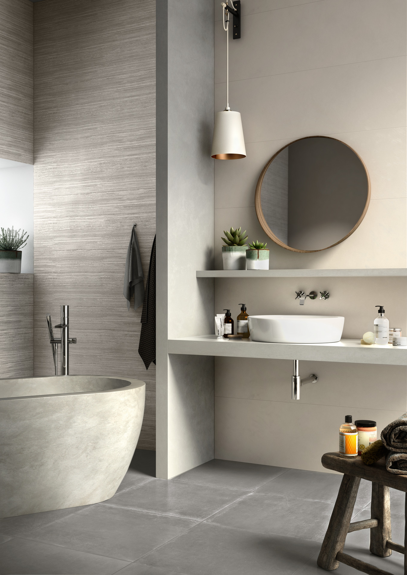 El revestimiento del baño moderno se convierte en decoración, coprotagonista e indispensable compleción en la proyección de un estilo contemporáneo sobrio y exquisito. Ragno ha rediseñado texturas, superficies y colores capaces de definir el estilo moderno del baño. Superficies matéricas ligeramente imperfectas que crean efectos tridimensionales, texturas relajantes y minimalistas de efecto mate, con la garantía de la higiene y la practicidad de la cerámica de formato grande: estas son las propuestas de las colecciones Terracruda, Tactile y Resina.
