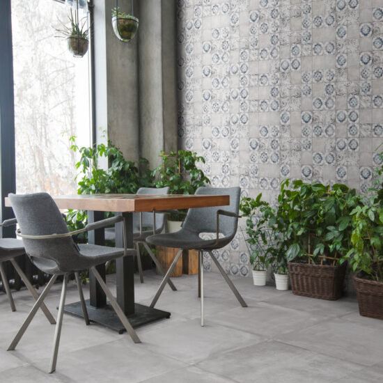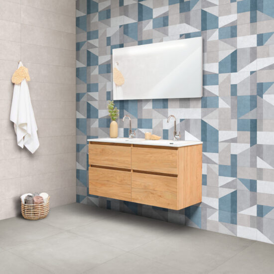 Dos nuevos formatos, cinco colores y una vasta gama de decoraciones, estructuras y mosaicos configuran una imitación del cemento moderna y sofisticada.