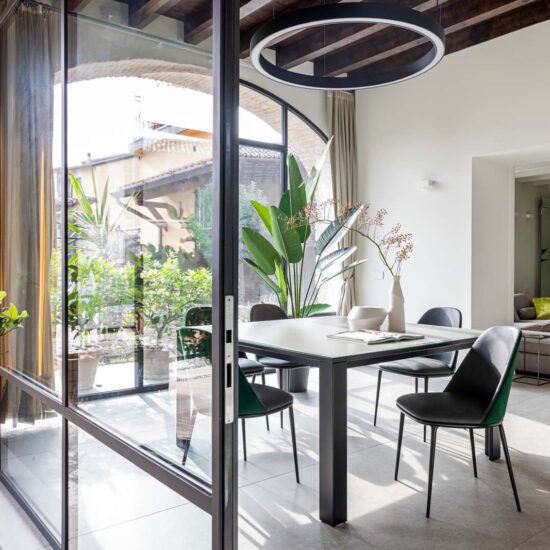 Un antiguo caserío del siglo XVII situado en Cellatica, en los collados de Franciacorta, ha sufrido una maravillosa transformación gracias a la creatividad del estudio bresciano Flussocreativo. La familia propietaria, con tres hijos, confió a los dos diseñadores, Gianfranco Di Costanzo y Daniel Facchetti, el arduo cometido de realizar una moderna morada que mantuviese viva la esencia histórica del lugar gracias a diversas medidas estilísticas.