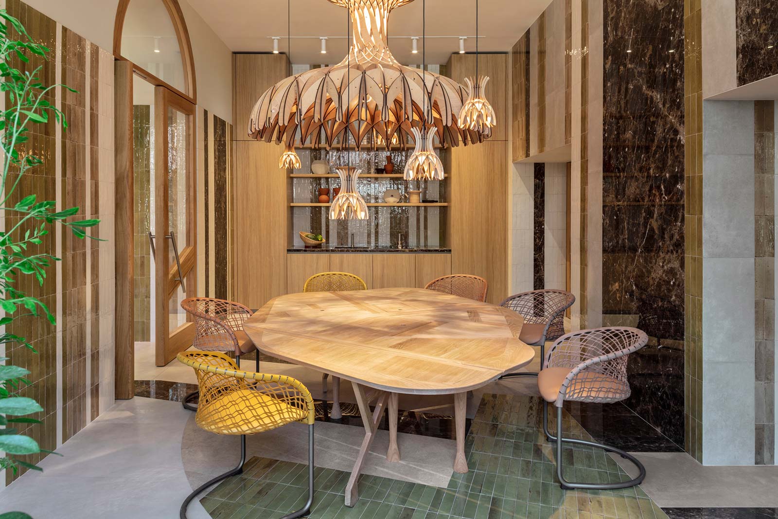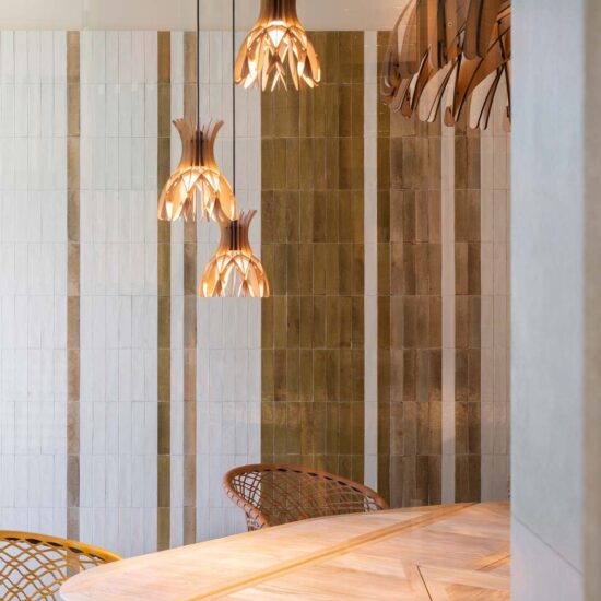 "La cerámica es un material antiguo, natural, empleado en las construcciones desde los orígenes de la humanidad. Hemos jugado con el tema de la araña y de la tela de araña, redescubriendo la historia de la marca Ragno, como un hilo conductor entre pasado, presente y futuro”, explica Benedetta Tagliabue refiriéndose al proyecto.