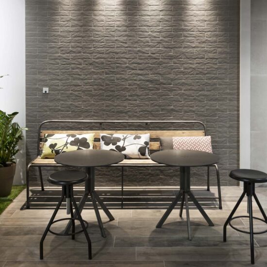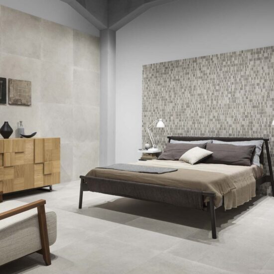 Tactile: un revestimiento con una mezcla de tactos y combinaciones cromáticas de colores cálidos y pastosos reunidos en un formato (el de 40 x 120 cm) que permite la repetición de motivos y texturas en amplias superficies. Las diversas sensaciones táctiles provocadas por los relieves tridimensionales de esta colección reúnen y combinan entre sí algunas de las tendencias más en boga del momento: tramas textiles, decoraciones que imitan el encaje, evocaciones de las baldosas hidráulicas, patrones metálicos en relieve, papel pintado y pequeñas teselas de mosaico.