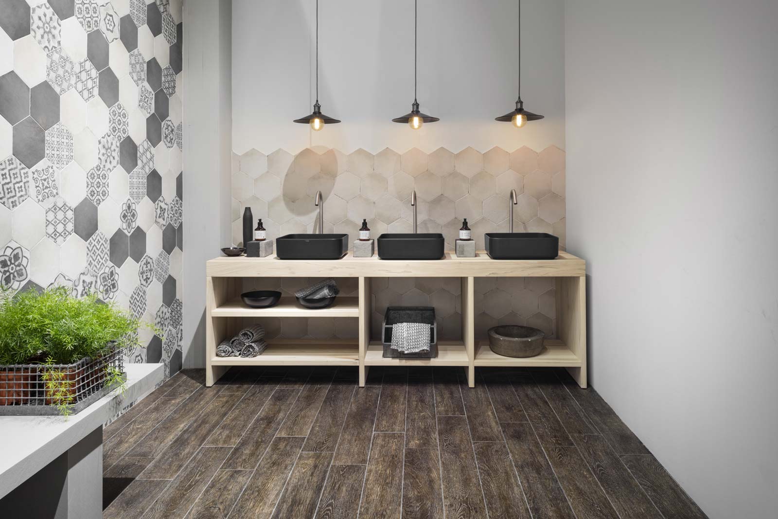 Pavimentaciones exteriores, baños, cocinas e interiores configuraron el fondo sobre el que se presentaron las nuevas colecciones de cerámica y gres, caracterizadas por superficies mates y matéricas, colores cálidos y pulverulentos, tramas en relieve y decoraciones encantadoramente rétro.