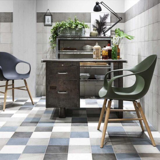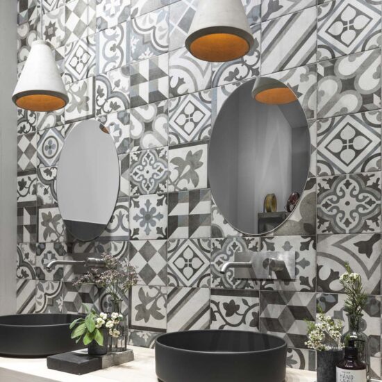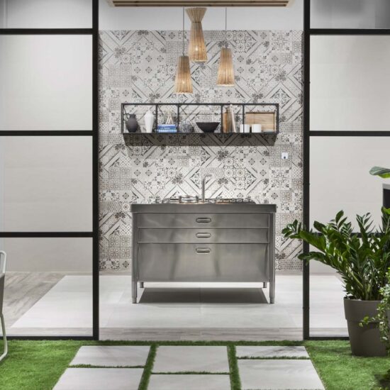 A_Mano: la tradición cerámica de las mayólicas inspira una colección en gres que propone un azulejo de formato cuadrado (de 20 x 20 cm) y de múltiples posibilidades estilísticas, gracias a doce elementos decorativos (en tres variantes de color) que componen la versión “Decoro Mix” y dos decoraciones “Tappeto” propuestas en otras tres variantes cromáticas. A_Mano resulta adecuada tanto para revestir suelos como paredes.