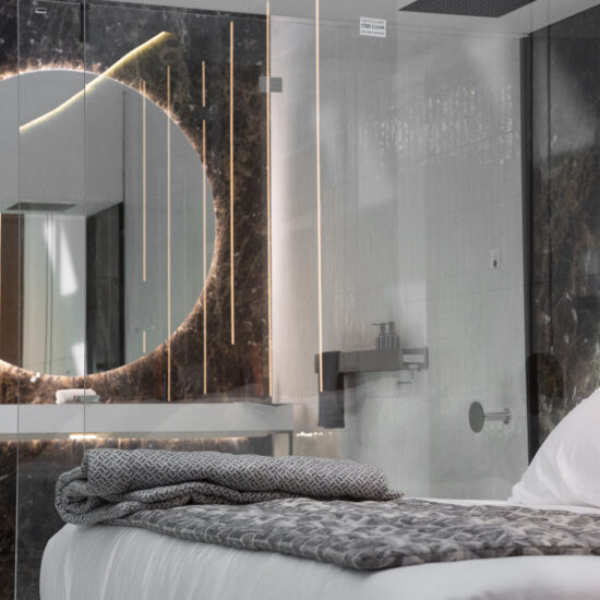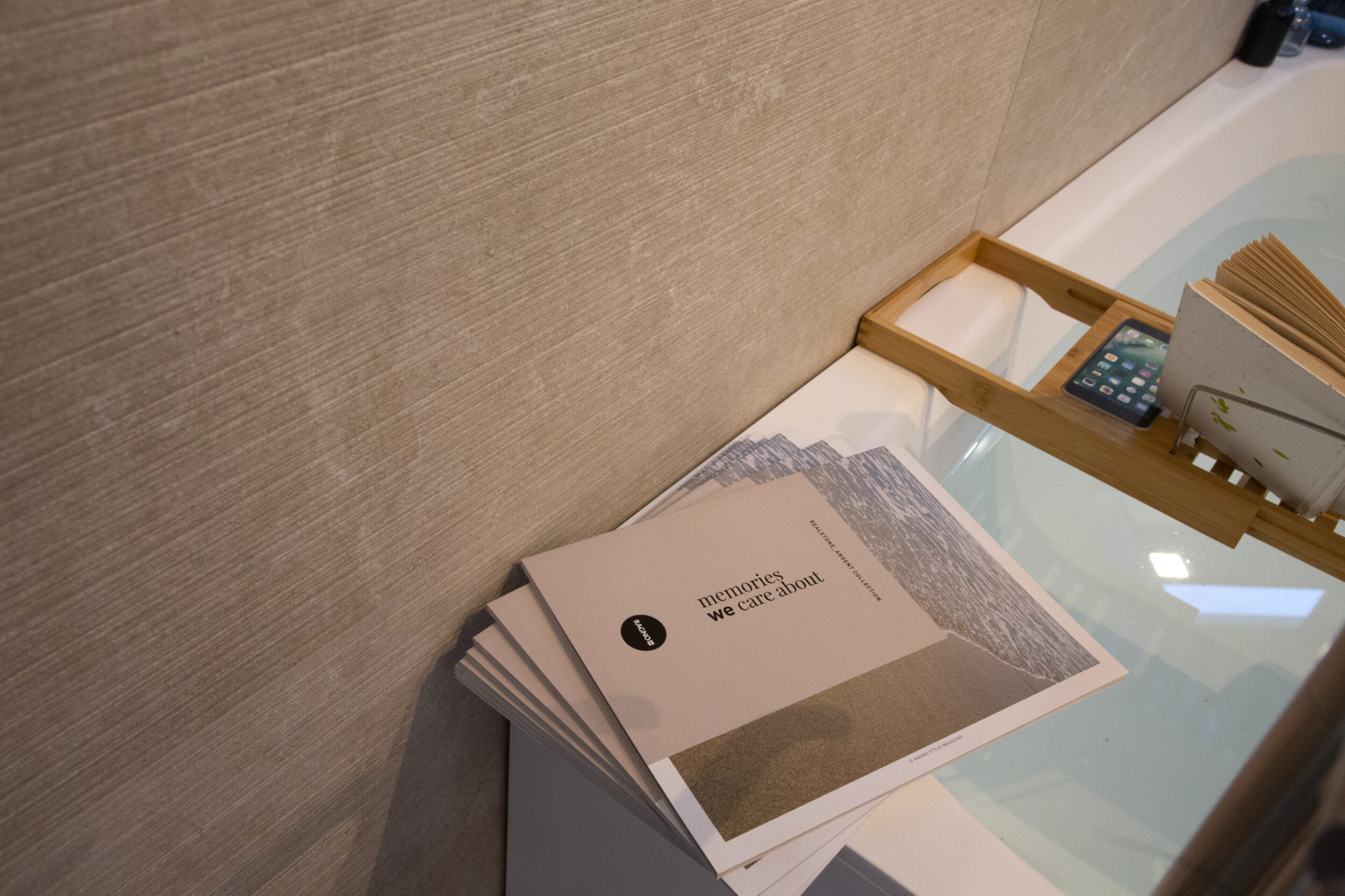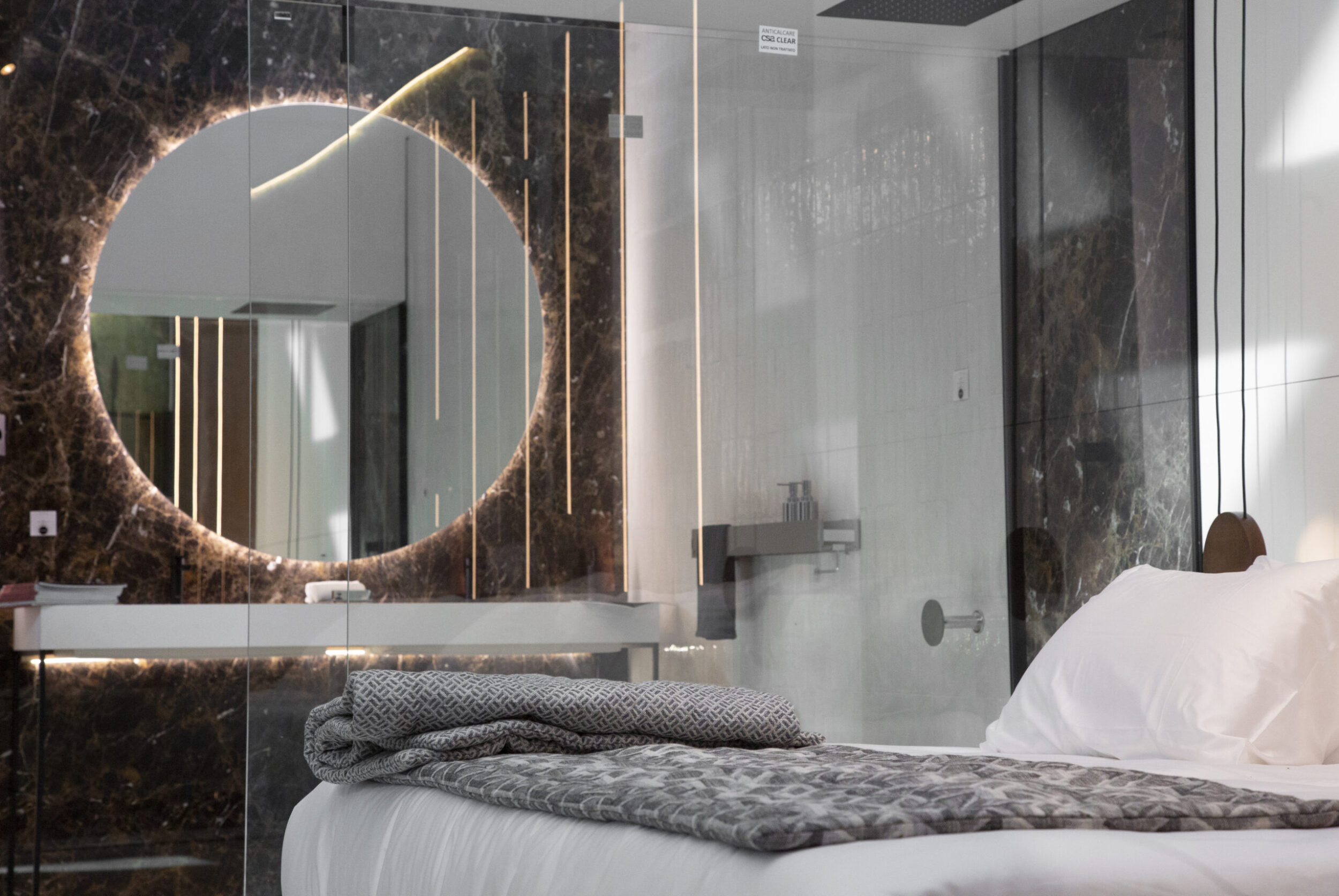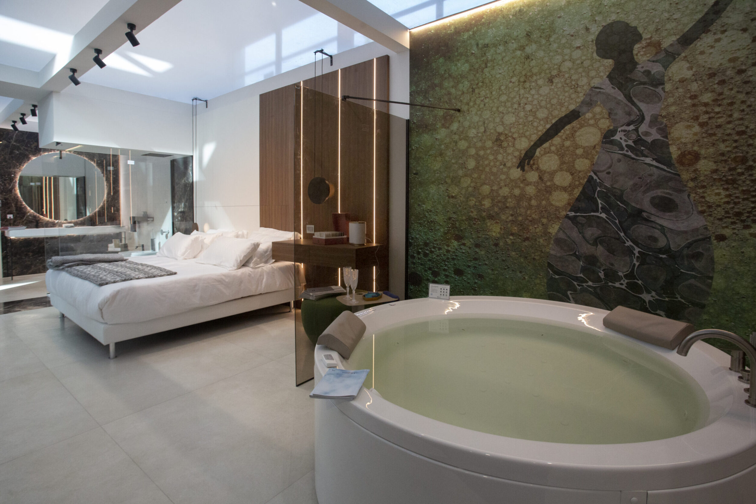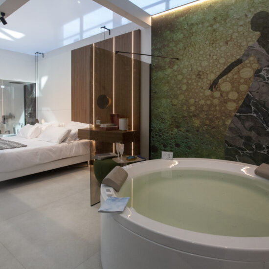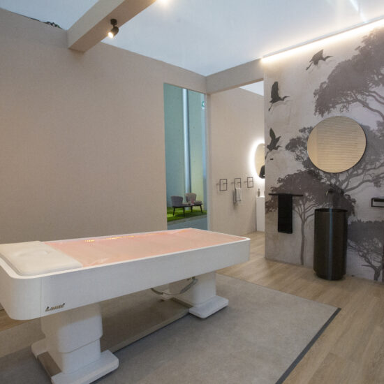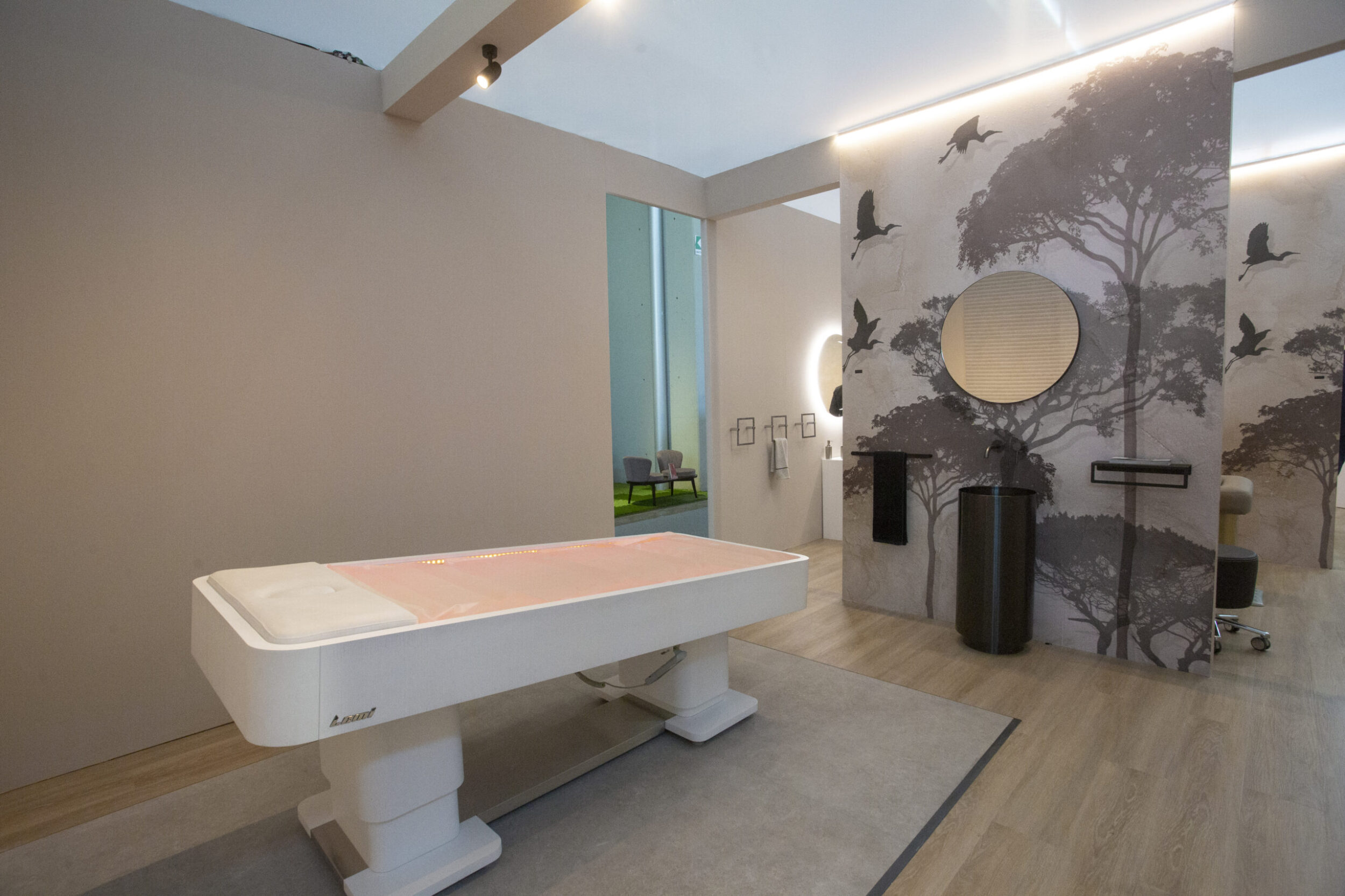 “Hotel in motion” es el espacio expositivo versátil dedicado al mundo de las estructuras de alojamiento en el que las colecciones de cerámica y gres de Ragno han sido seleccionadas por Wellness 7.0, una red de profesionales y asesores especializados en el sector de los hoteles, el fitness y el bienestar, para revestir la welness suite de un hotel.