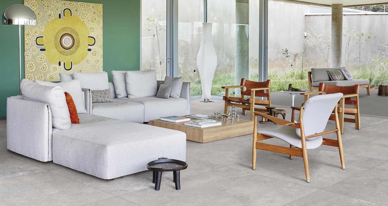 Realstone_Navigli: Imagen moderna y riqueza gráfica para ambientes de marcada personalidad: esta colección se inspira en la típica grava que se obtiene a partir de la mezcla de fragmentos de Ceppo di Gré y cemento, en dos tonalidades imperecederas, Grigio y Naturale. Los cuatro formatos disponibles y la tecnología StepWise antideslizamiento la convierten en una colección versátil, perfecta asimismo para el exterior y los espacios comerciales.