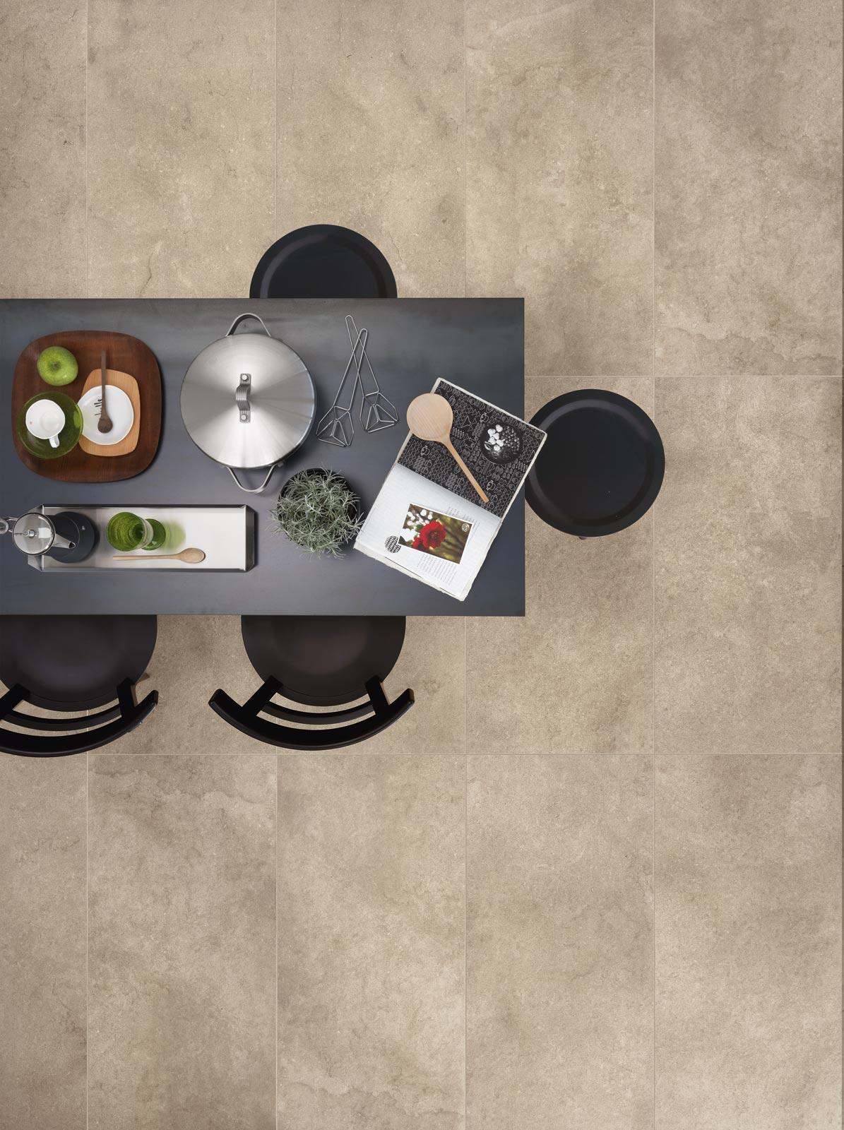 Realstone_Rain: Inspirada en la piedra Limestone de origen inglés y caracterizada por presentar una suave degradación tonal en los matices del greige, Realstone_Rain es una colección que da luminosidad a los ambientes, en parte también gracias a la superficie, que elegir entre Natural y Soft. Perfecta para ambientes contemporáneos y minimalistas, se encuentra disponible en cuatro formatos distintos y en tres tonalidades diferentes —Almond, Greige y Taupe— pensadas para ser mezcladas entre sí con elegancia.
