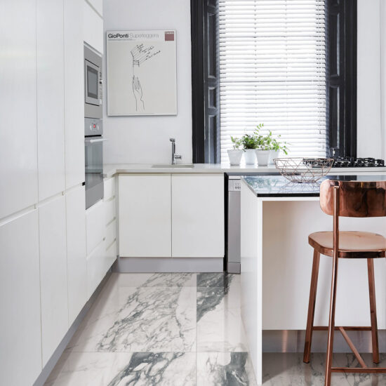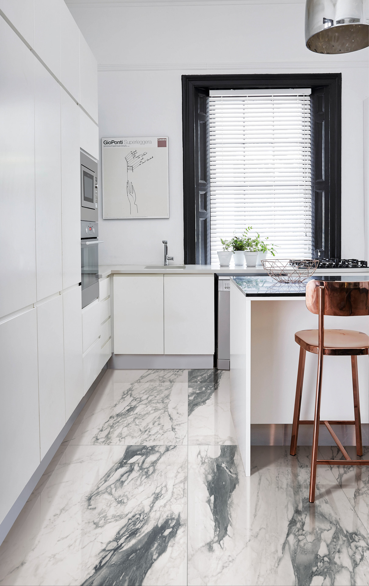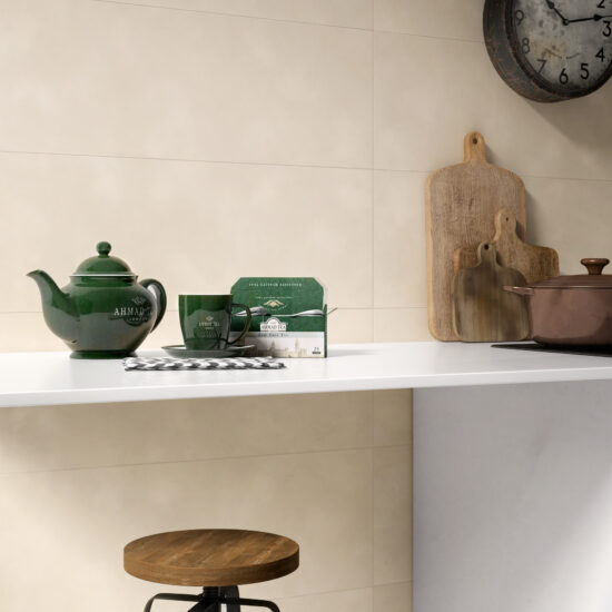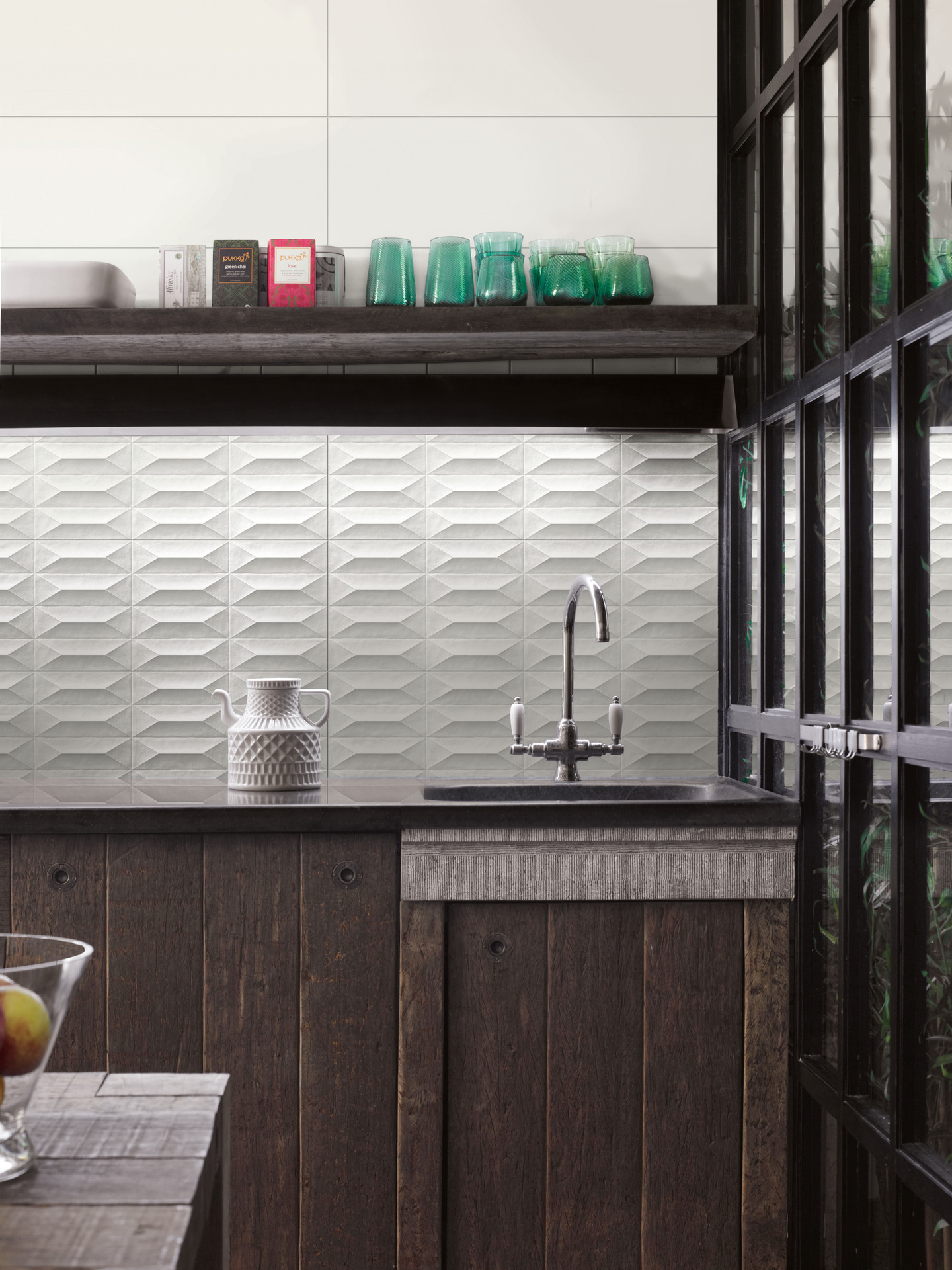 El blanco transformado en materia pura, en cambio, puede recorrer dos caminos diferentes partiendo de una única fuente de inspiración: la evocación del pasado. Por una parte la colección Cocciopesto, azulejos de cerámica que interpretan la historia artesanal distintiva de Italia sobre la superficie de las placas de 40 x 120 cm; por la otra, las colecciones Imperiale y Bistrot. que le brindan a la pureza del blanco las ideas de lujo, preciosidad y fulgor históricamente asociadas al mármol.