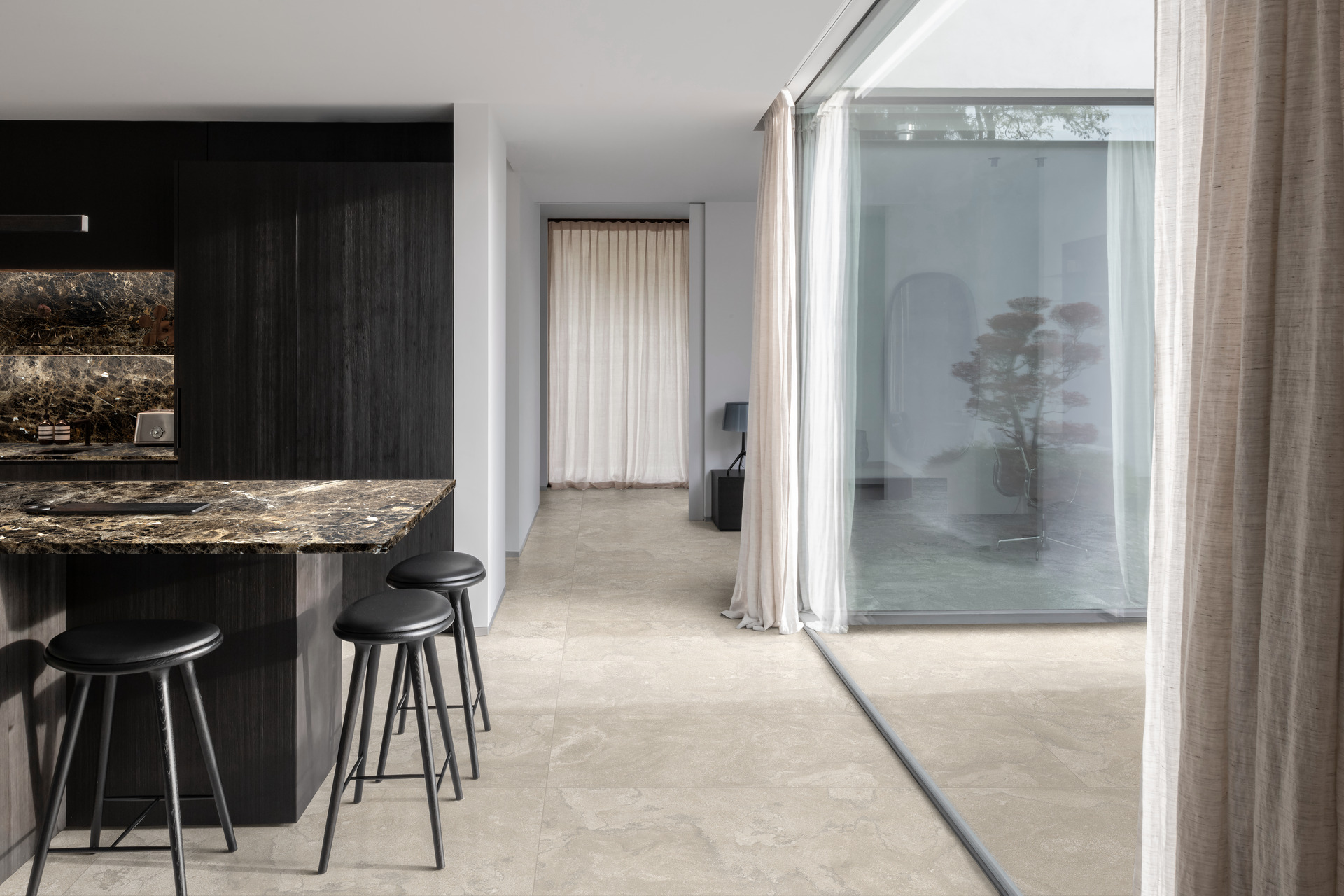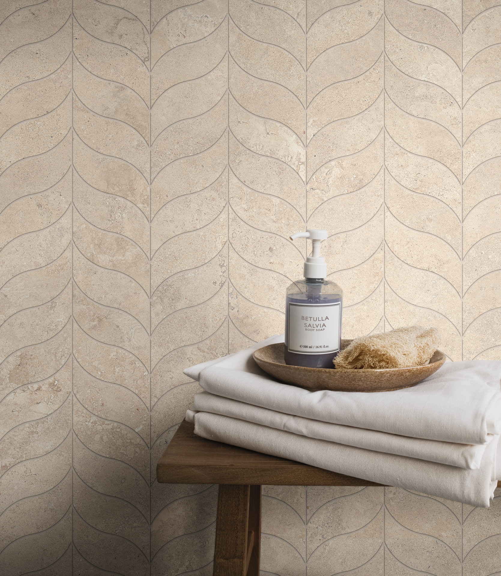 Mayenne es la expresión de un estilo cálido y mediterráneo que se percibe a través del veteado discreto y los delicados matices de los dos colores Avorio y Beige que resultan aún más evidentes en el Mosaico Foglia en el formato de 31 × 39 cm. También en este caso, los formatos de 100 × 100, 60 × 120 y 60 × 60 cm se proponen en el grosor de 8,5 mm y sonelaborados con la tecnología 3D Ink y, como en el caso de Ardesia, ambos colores se articulan en el formato de 100 × 100 cm y 20 mm de grosor.