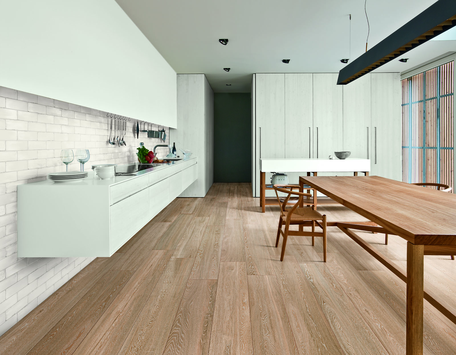 Perfecto tanto para el baño como para el resto de la casa, el gres de imitación de la madera de roble blanqueado se puede combinar elegantemente con otros materiales como la piedra o el cemento, dando lugar a interiores llenos de personalidad, modernos y luminosos, con la enorme ventaja de su practicidad en la limpieza cotidiana y de no exigir el mantenimiento que requiere la madera de verdad.