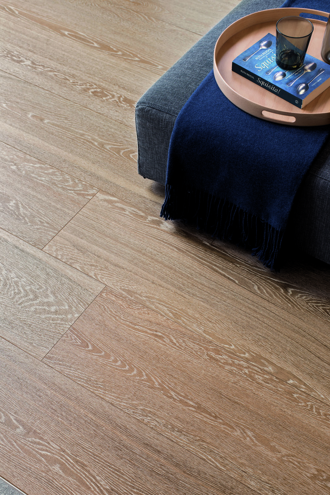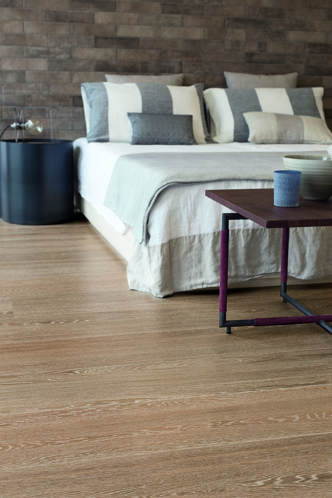 Woodgrace reinterpreta y propone el roble blanqueado en una colección de gres porcelánico de imitación del parqué que con sus vetas claras resulta perfecto para interiores de estilo contemporáneo y de inspiración escandinava.