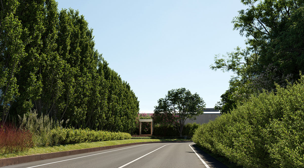 La intervención en la Via Ancora es la primera realizada en el distrito de Sassuolo en el marco del Masterplan «Cuore verde» y se concentra en el límite oeste del sitio industrial, transformando un muro existente y un borde de asfalto en un parque lineal que recorre la carretera con un sistema de transiciones y varias zonas de conexión física y visual con los espacios residenciales.