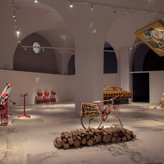 La instalación puso en relación el ciclo pictórico de Tintoretto con xilografías y obras contemporáneas, recuperadas de los archivos de las Gallerie Estensi, para suscitar la reflexión acerca de los efectos del cambio climático. Forma parte integrante de la obra un pavimento especial de gres, diseñado por el artista y realizado por Marazzi.