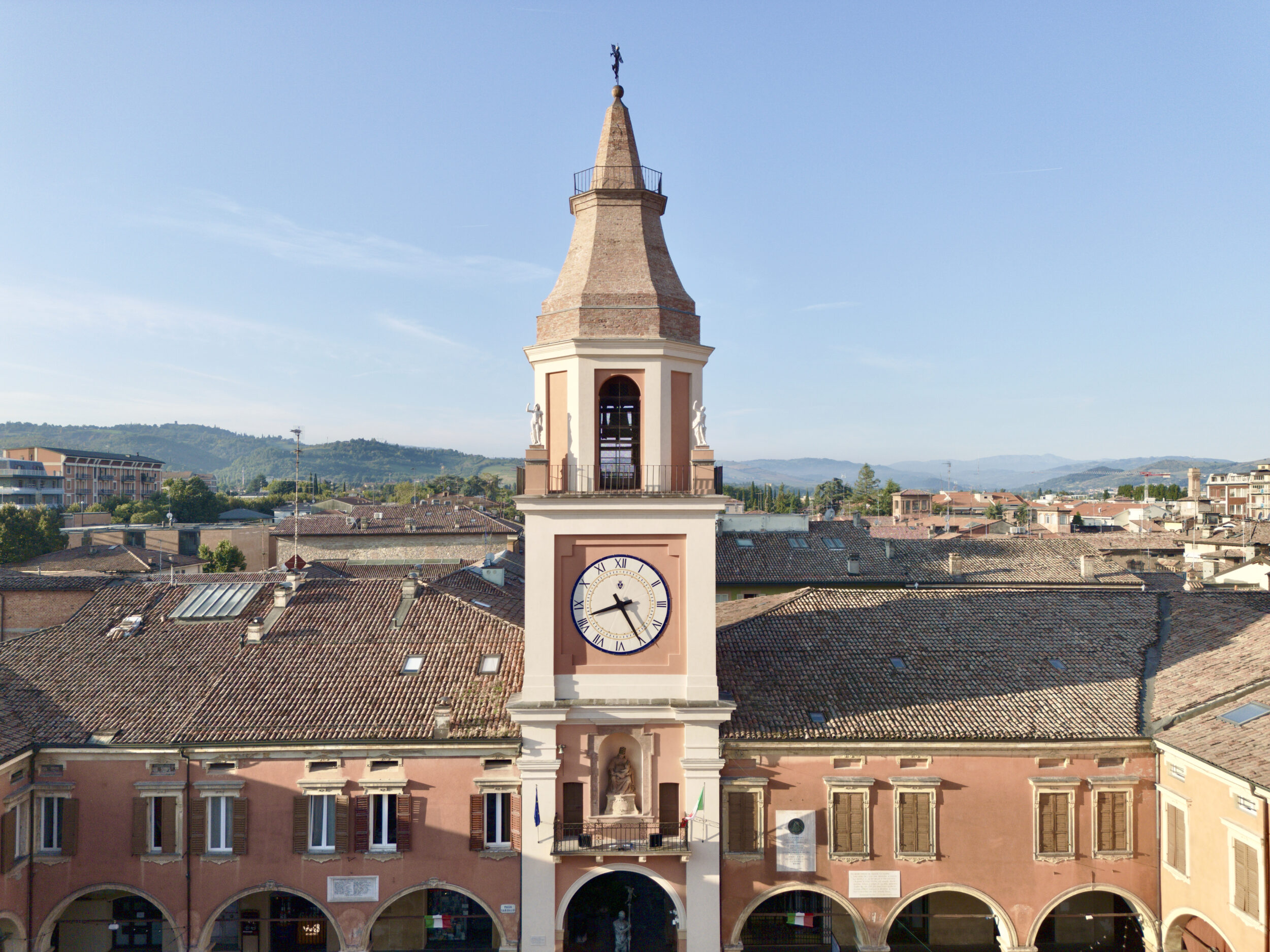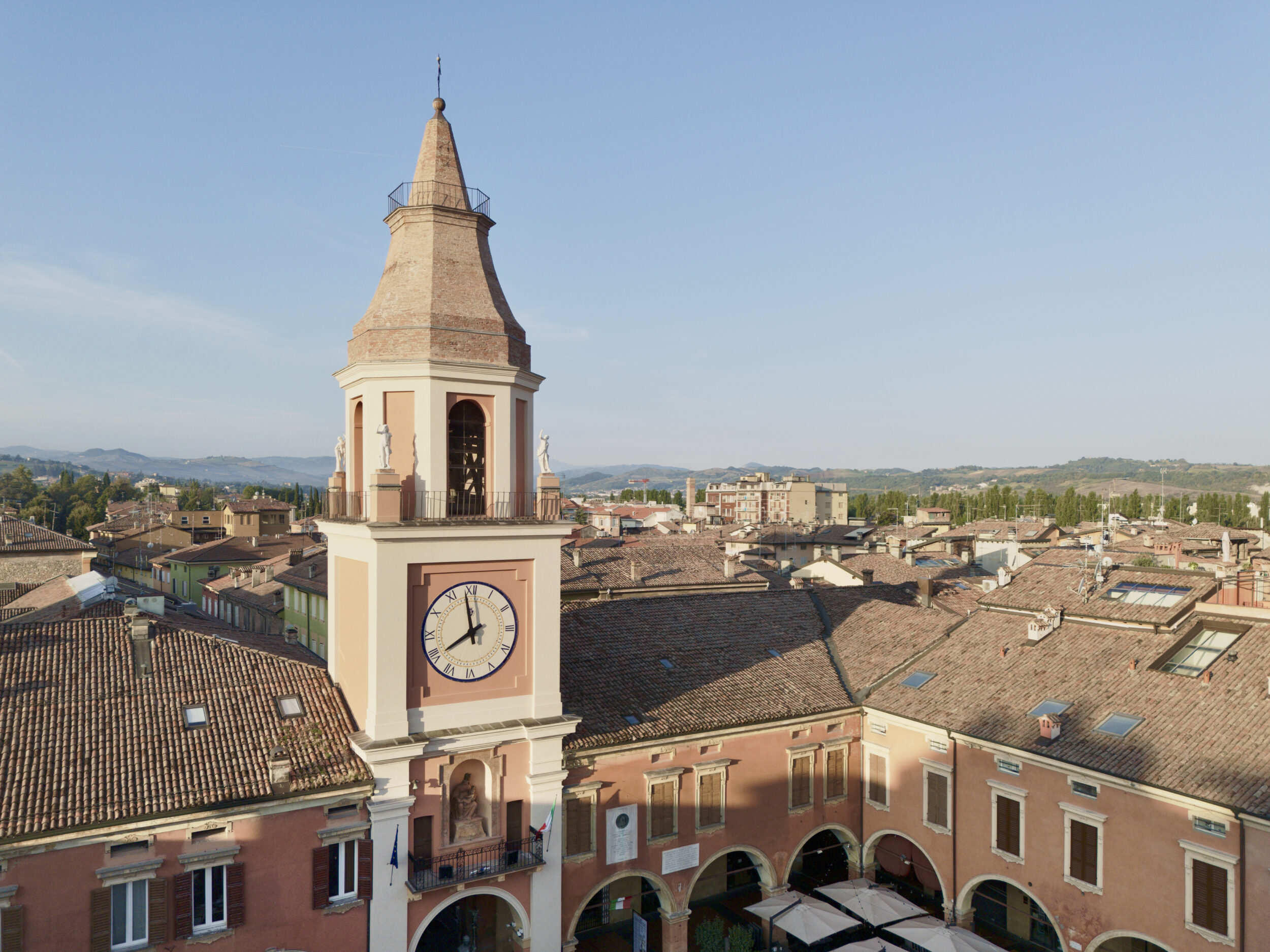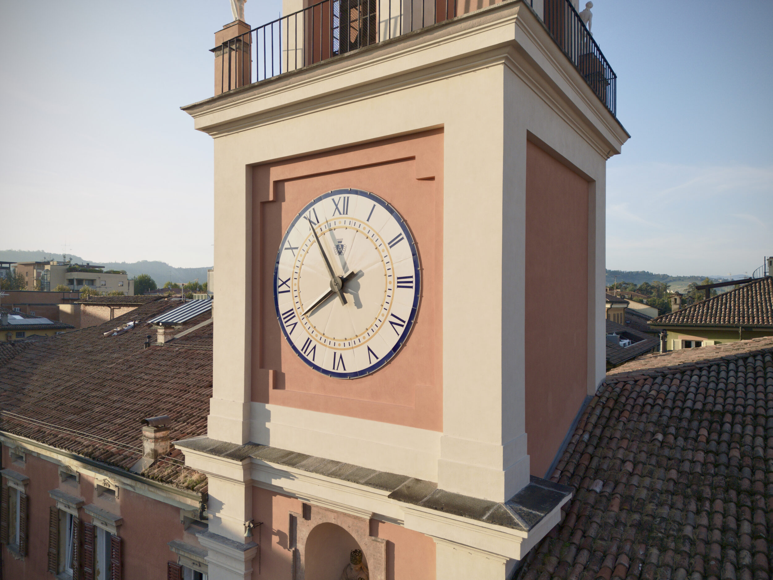 La restauración de la Torre del Reloj, realizada por el Ayuntamiento de Sassuolo con la contribución del Grupo Marazzi, ha revalorizado un elemento arquitectónico que con el tiempo se ha convertido en símbolo de la ciudad. “Il Campanone”, edificado entre 1676 y 1680 según un proyecto del arquitecto ducal Antonio Loraghi, caracteriza fuertemente la Piazza Garibaldi, centro neurálgico de la ciudad que acoge durante todo el año mercados, conferencias, espectáculos y eventos abiertos a los ciudadanos. La Torre ha sufrido varias intervenciones por parte de diferentes arquitectos desde su creación hasta los últimos trabajos de restauración de la plaza en los años ochenta, ocasión en la que fue precisamente Marazzi quien donó la esfera de cerámica del reloj. Marazzi tiene un profundo vínculo afectivo con la Piazza Garibaldi, donde aún está presente la histórica droguería que pertenecía al fundador de la empresa.